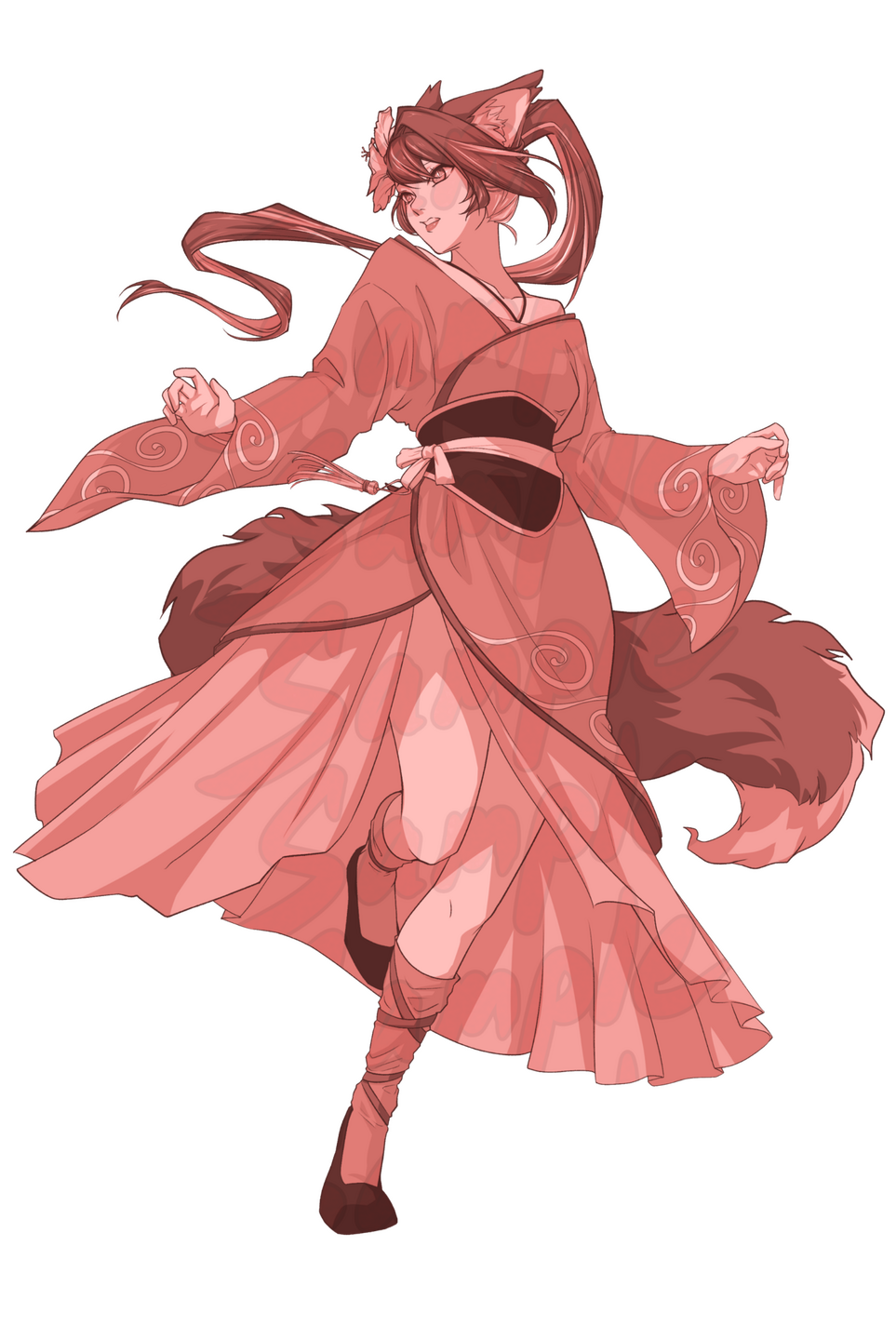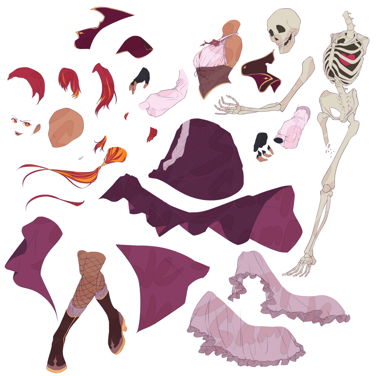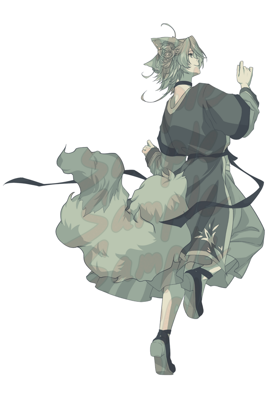 An illustration ready for puppeting will include all necessary accessory, clothing, and body parts to be separated and fully rendered and ready for puppeting in programs such as After Effects and Live2D. The client will receive the art in the form of a static PNG as well as a PSD with all of the layered pieces.Please note that a puppet is NOT INTENDED to be used for model rigging for VTubers, as the splitting is much more simplified.Suggested applications are transition/waiting screens for streaming or music videos for covers.